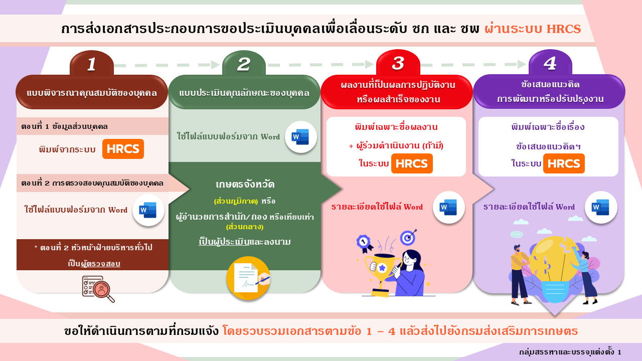 ทั้งนี้ ขอให้ผู้มีรายชื่อที่ประสงค์เข้ารับการประเมินฯ ส่งเอกสารประกอบการประเมินบุคคลไปยังกรมส่งเสริมการเกษตร ตั้งแต่วันจันทร์ที่ 15 ถึงวันศุกร์ที่ 26 กันยายน 2568 ในวันและเวลาราชการ (นับวันที่สำนักงานเลขานุการกรมประทับตราลงรับเรื่อง)