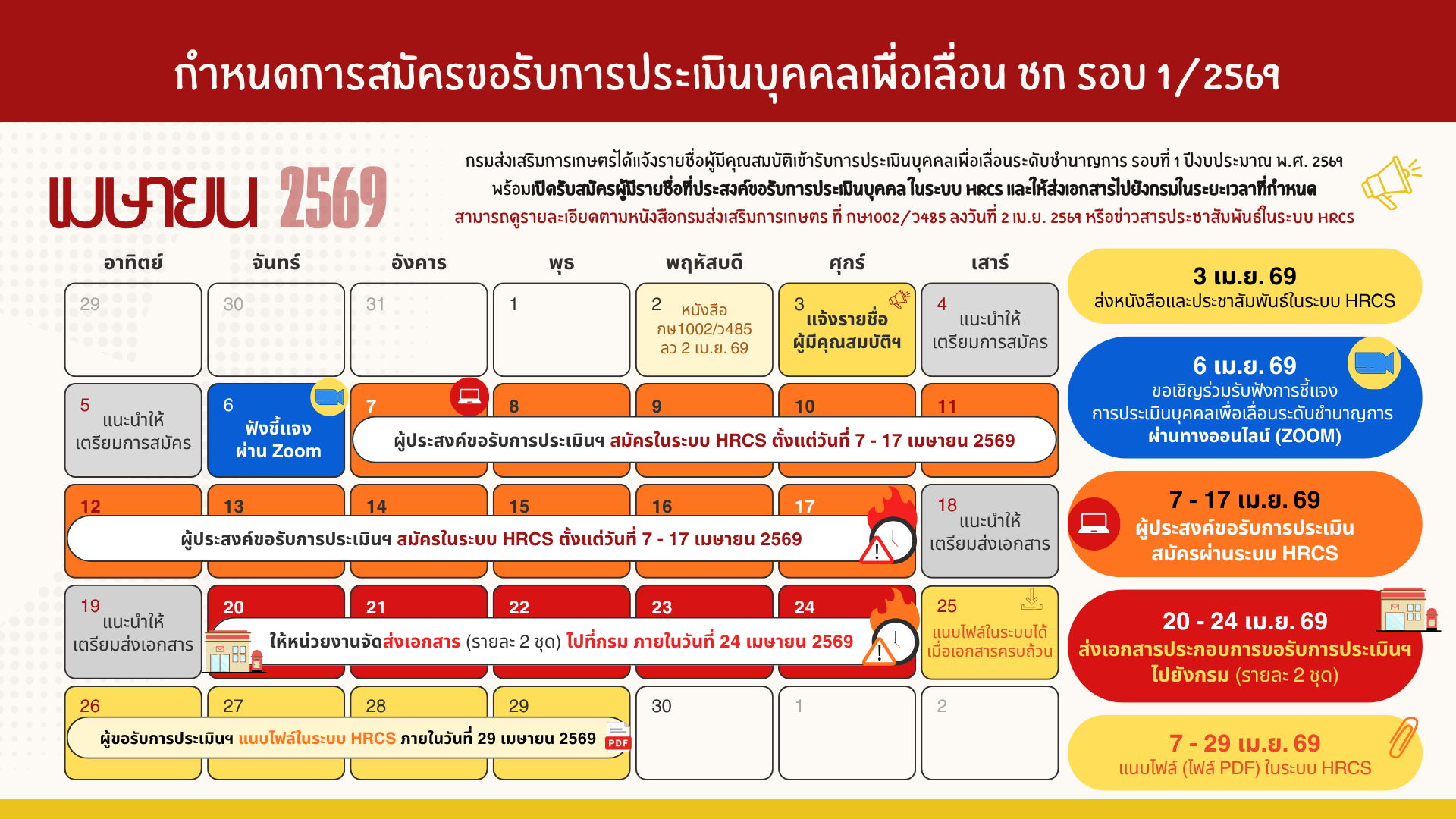 หากพ้นระยะเวลาที่กำหนด (ไม่สมัครในระบบ HRCS ภายในวันที่ 17 เม.ย. 69 และ/หรือไม่ส่งเอกสารถึงกรม ภายในวันที่ 24 เม.ย. 69) จะถือว่าไม่ประสงค์เข้ารับการประเมินบุคคลในรอบนี้