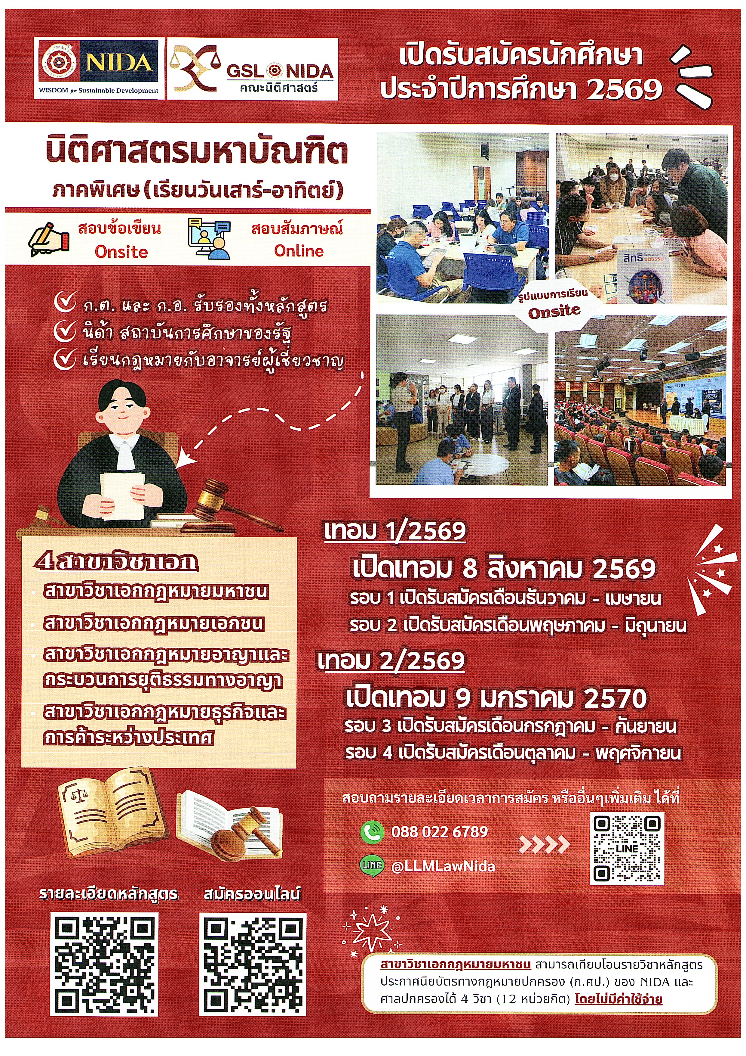 สถาบันบัณฑิตพัฒนบริหารศาสตร์ เปิดรับสมัครนักศึกษาหลักสูตรนิติศาสตรมหาบัณฑิต ภาคพิเศษ (เรียนเสาร์ – อาทิตย์) ใน 4 สาขาวิชาเอก ดังนี้